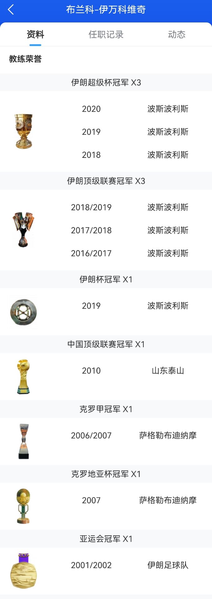 伊万执教荣誉↓